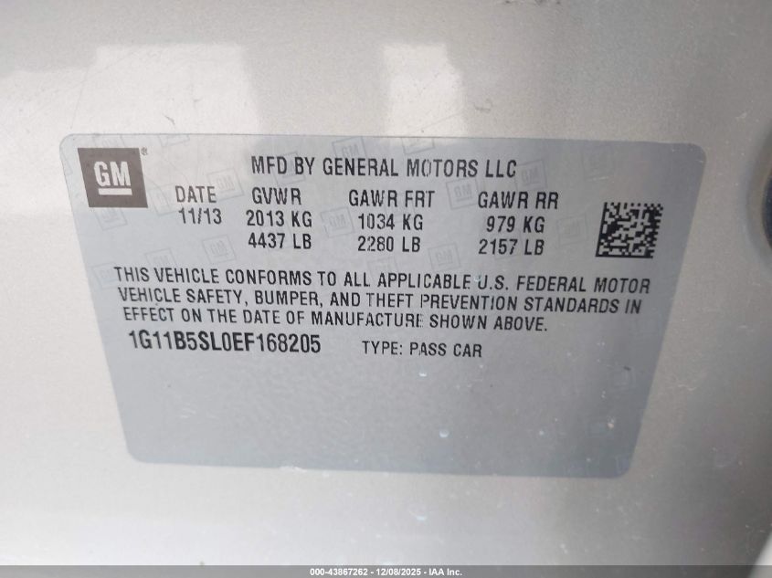 Колір КоричневийЦиліндри 4Привід Передній привідVIN 1G11B5SL0EF168205Стан Заводиться та їде (перевірено)Ушкодження Передня або задня AutoRIA