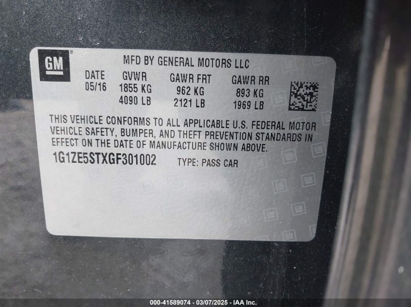 2016 CHEVROLET MALIBU 2016 року Бензин, 1.5, Передній привід, vin - 1G1ZE5STXGF301002 з США