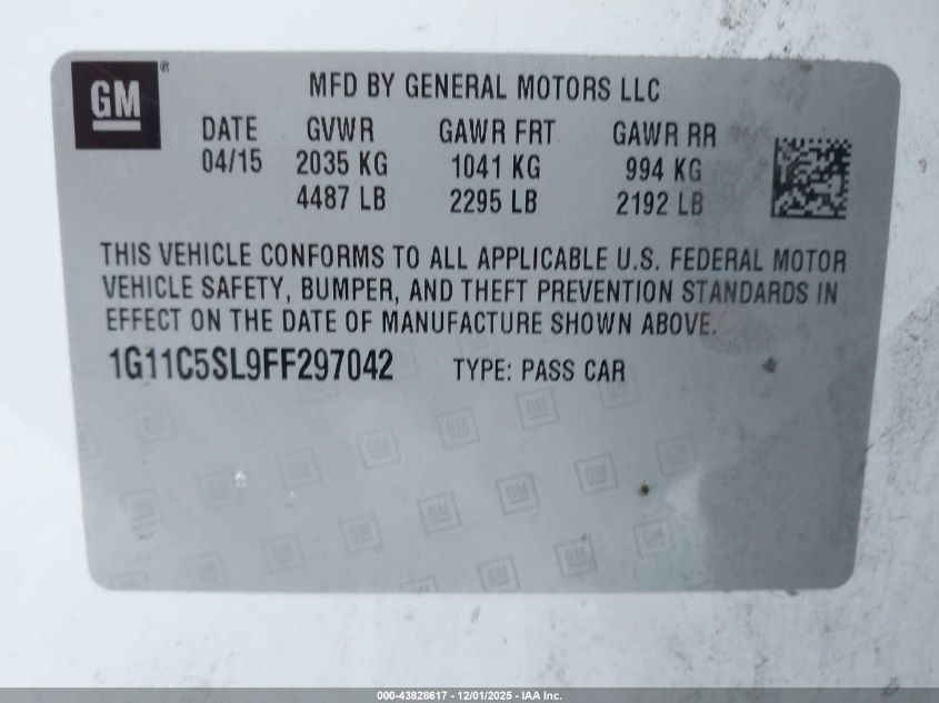 2015 CHEVROLET MALIBU 2015 року Бензин, 2.5, Передній привід, vin - 1G11C5SL9FF297042 з США