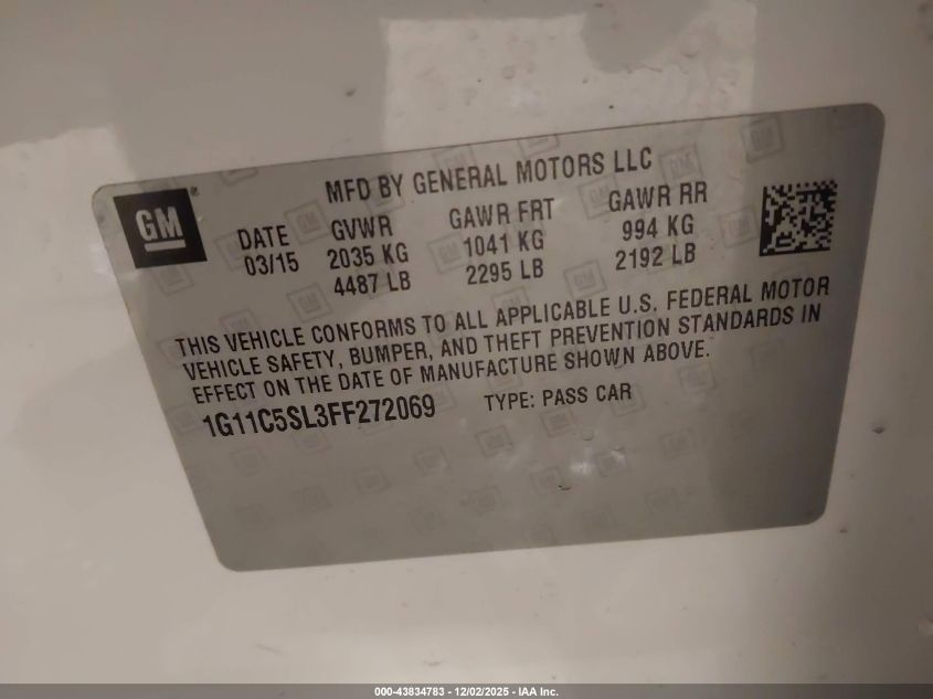 2015 CHEVROLET MALIBU 2015 року Бензин, 2.5, Передній привід, vin - 1G11C5SL3FF272069 з США