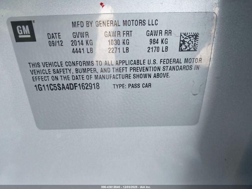 Колір СрібнийЦиліндри 4Привід Передній привідVIN 1G11C5SA4DF162918Стан Заводиться та їде (перевірено)Ушкодження Передня або задня AutoRIA