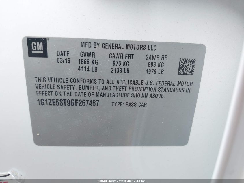 2016 CHEVROLET MALIBU 2016 року Бензин, 1.5, Передній привід, vin - 1G1ZE5ST9GF267487 з США