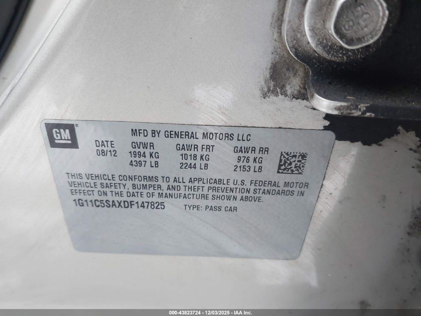 2013 CHEVROLET MALIBU 2013 року Бензин, 2.5, Передній привід, vin - 1G11C5SAXDF147825 з США