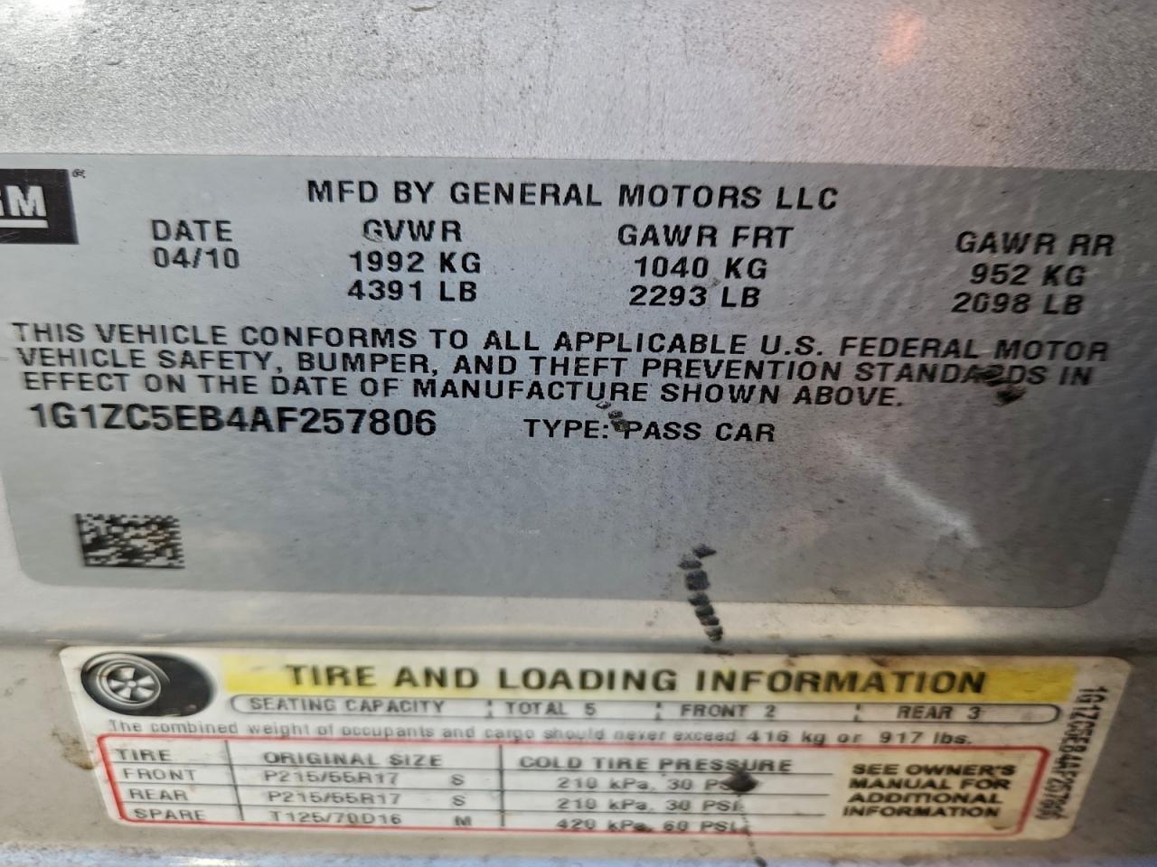 Колір СрібнийЦиліндри 4VIN 1G1ZC5EB4AF257806Стан Заводиться та їде (перевірено)Ушкодження Передня або задня