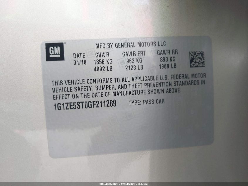 2016 CHEVROLET MALIBU 2016 року Бензин, 1.5, Передній привід, vin - 1G1ZE5ST0GF211289 з США