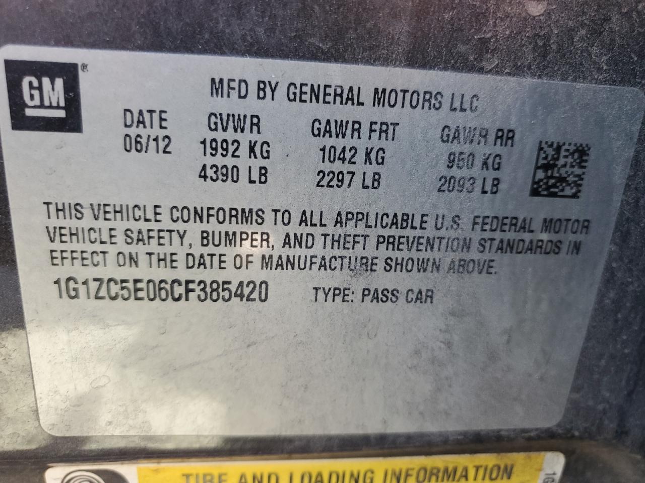 Колір СірийЦиліндри 4VIN 1G1ZC5E06CF385420Стан НевідомоУшкодження Передня або задня AutoRIA