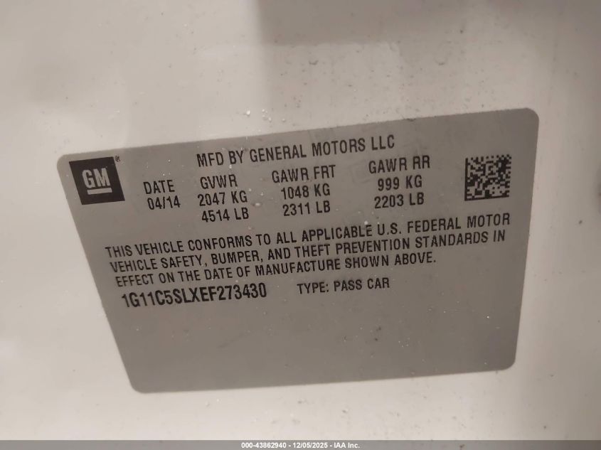 Колір БілийЦиліндри 4Привід Передній привідVIN 1G11C5SLXEF273430Стан СтаціонарноУшкодження Задня ліва AutoRIA