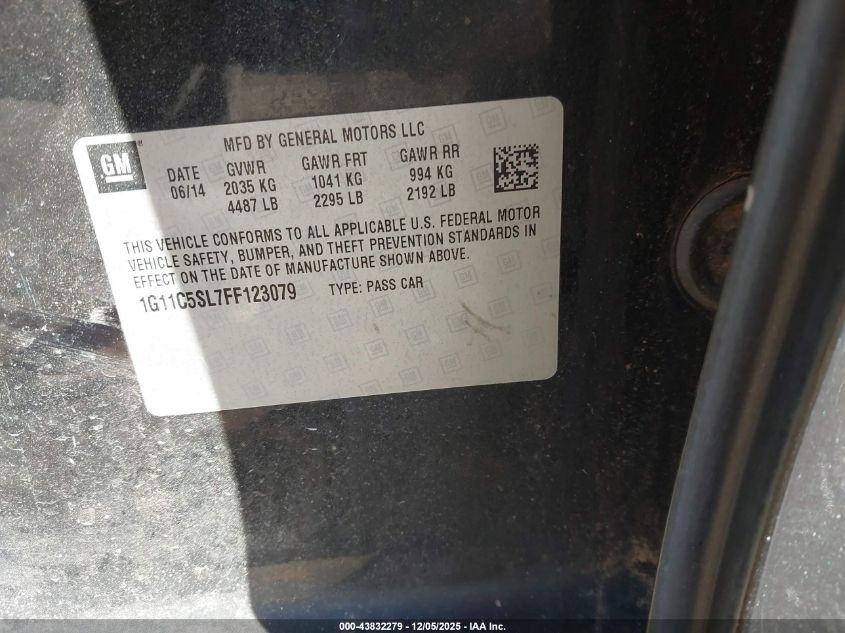 2015 CHEVROLET MALIBU 2015 року Бензин, 2.5, Передній привід, vin - 1G11C5SL7FF123079 з США