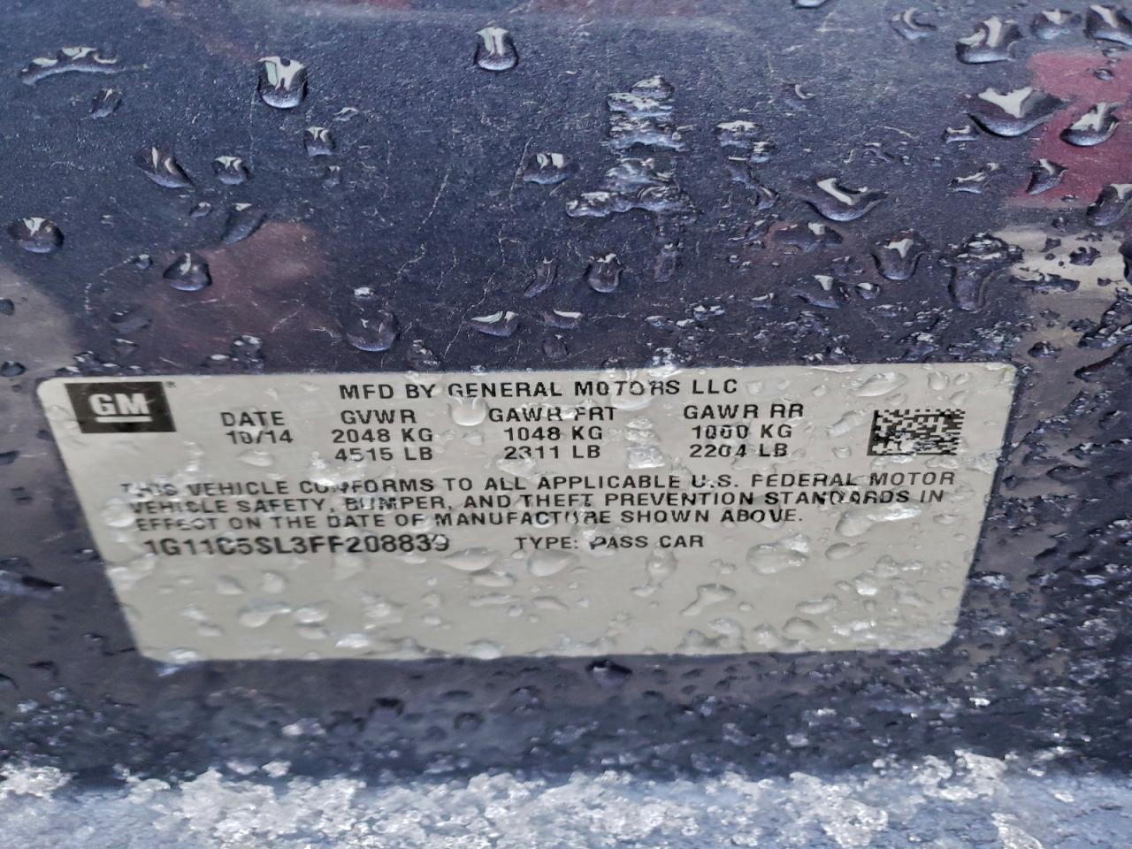Колір СинійЦиліндри 4VIN 1G11C5SL3FF208839Стан Заводиться та їде (перевірено)Ушкодження Передня або задня AutoRIA