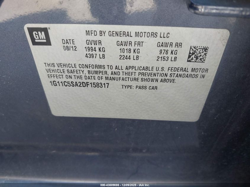 Колір СірийЦиліндри 4Привід Передній привідVIN 1G11C5SA2DF158317Стан СтаціонарноУшкодження Задня права AutoRIA