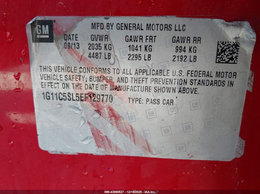 2014 CHEVROLET MALIBU 2014 року Бензин, 2.5, Передній привід, vin - 1G11C5SL5EF129770 з США