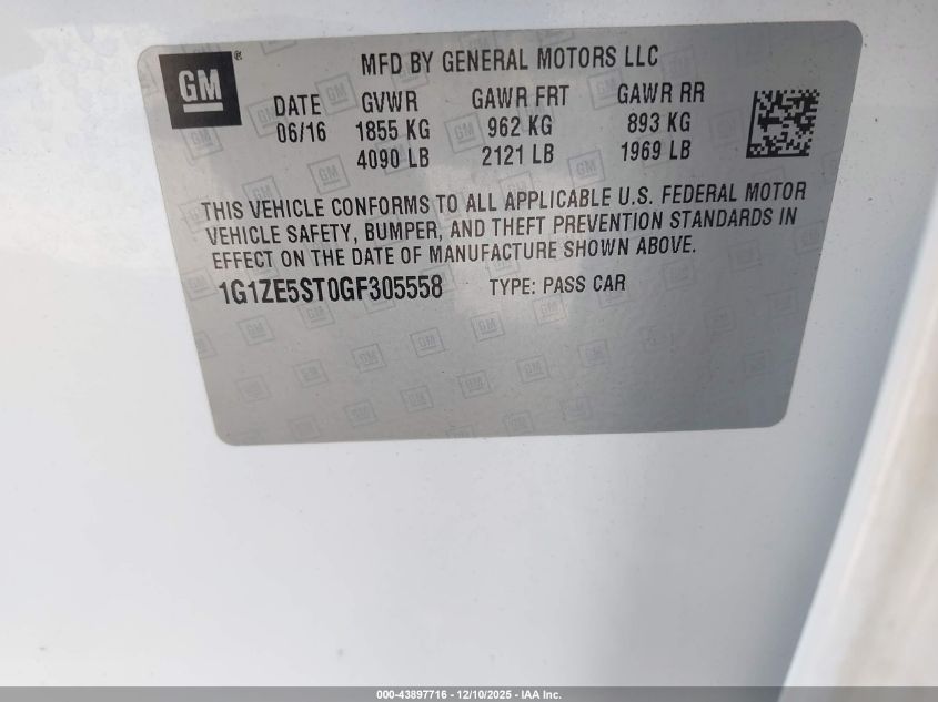 2016 CHEVROLET MALIBU 2016 року Бензин, 1.5, Передній привід, vin - 1G1ZE5ST0GF305558 з США