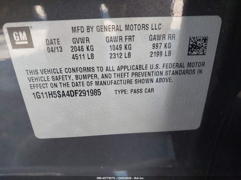 2013 CHEVROLET MALIBU 2013 року Бензин, 2.5, Передній привід, vin - 1G11H5SA4DF291985 з США