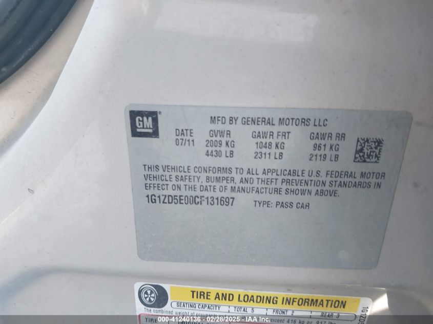 2012 CHEVROLET MALIBU 2012 року Бензин, 2.4, Передній привід, vin - 1G1ZD5E00CF131697 з США