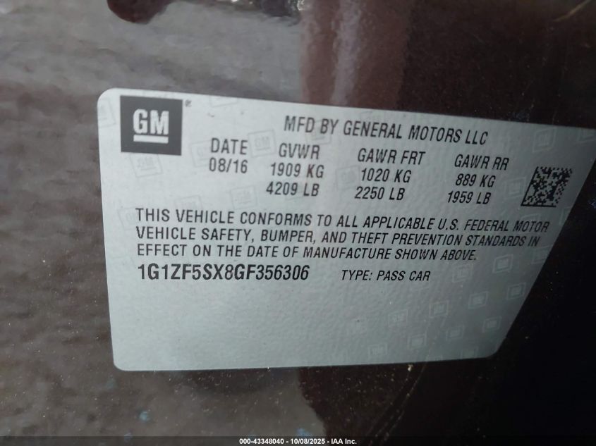 2016 CHEVROLET MALIBU 2016 року Бензин, 2.0, Передній привід, vin - 1G1ZF5SX8GF356306 з США
