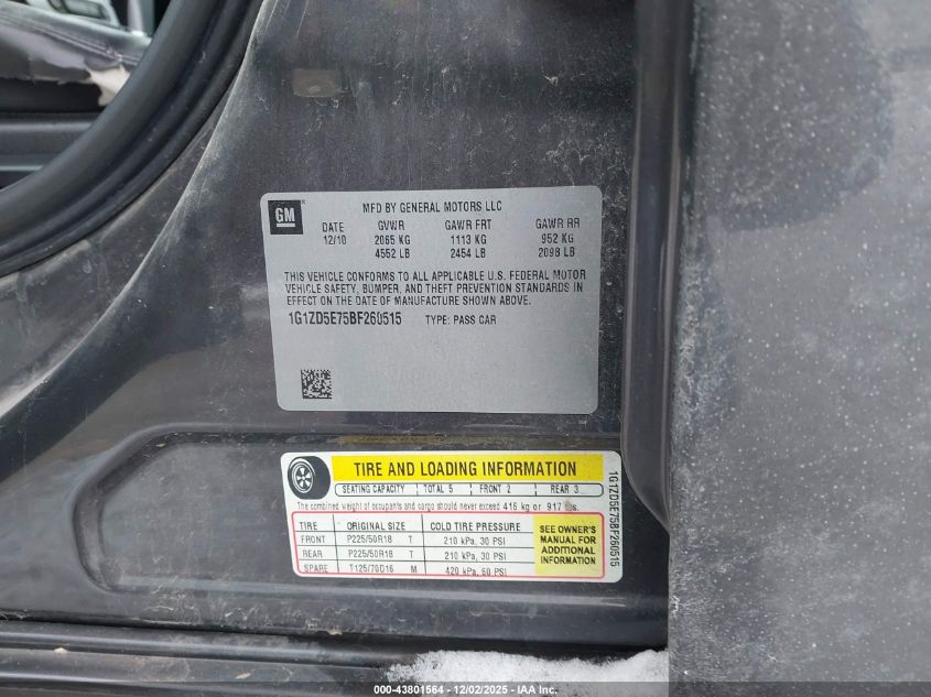 2011 CHEVROLET MALIBU 2011 року Бензин, 3.6, Передній привід, vin - 1G1ZD5E75BF260515 з США