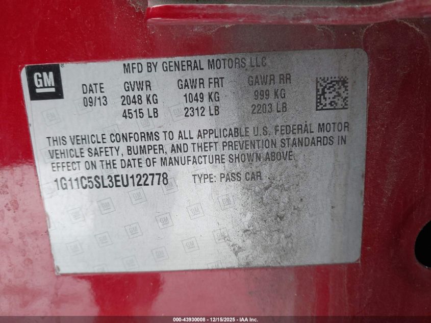 Колір ЧервонийЦиліндри 4Привід Передній привідVIN 1G11C5SL3EU122778Стан Заводиться та їде (перевірено)Ушкодження Передня права AutoRIA