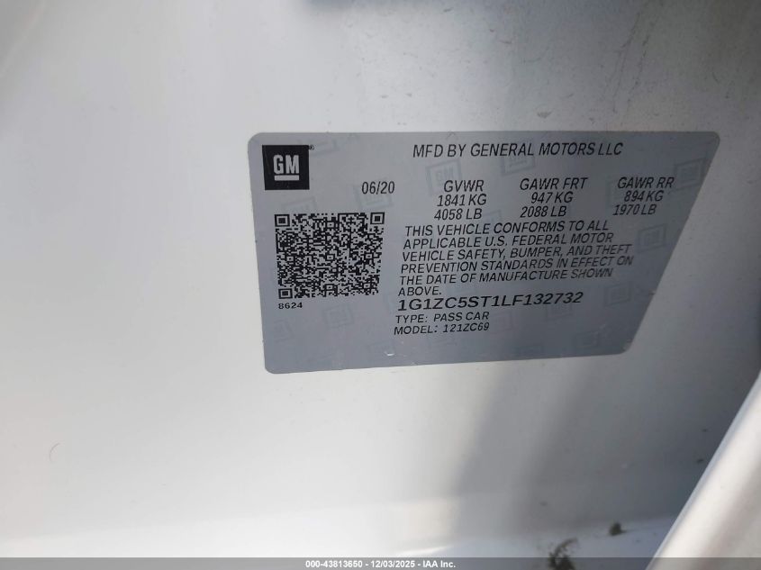 2020 CHEVROLET MALIBU 2020 року Бензин, 1.5, Передній привід, vin - 1G1ZC5ST1LF132732 з США