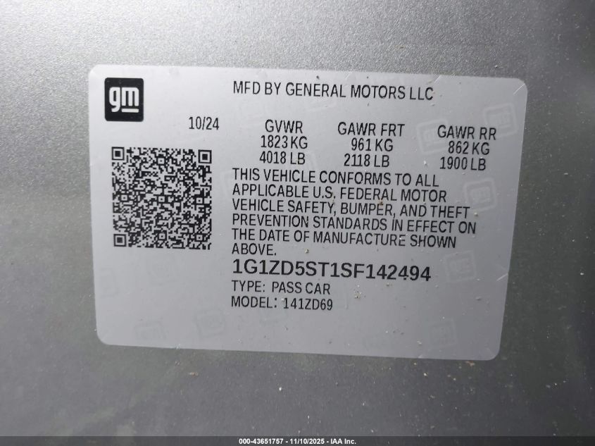 2025 CHEVROLET MALIBU 2025 року Бензин, 1.5, Передній привід, vin - 1G1ZD5ST1SF142494 з США