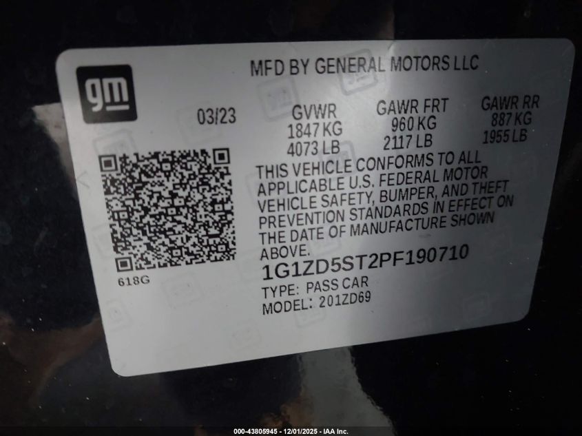 2023 CHEVROLET MALIBU 2023 року Бензин, 1.5, Передній привід, vin - 1G1ZD5ST2PF190710 з США