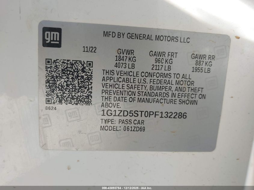 2023 CHEVROLET MALIBU 2023 року Бензин, 1.5, Передній привід, vin - 1G1ZD5ST0PF132286 з США