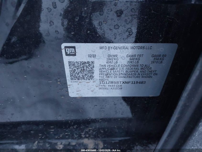 2022 CHEVROLET MALIBU 2022 року Бензин, 1.5, Передній привід, vin - 1G1ZB5STXNF119483 з США