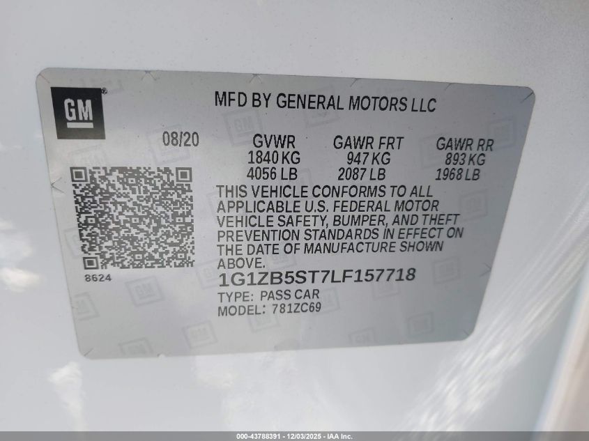 2020 CHEVROLET MALIBU 2020 року Бензин, 1.5, Передній привід, vin - 1G1ZB5ST7LF157718 з США