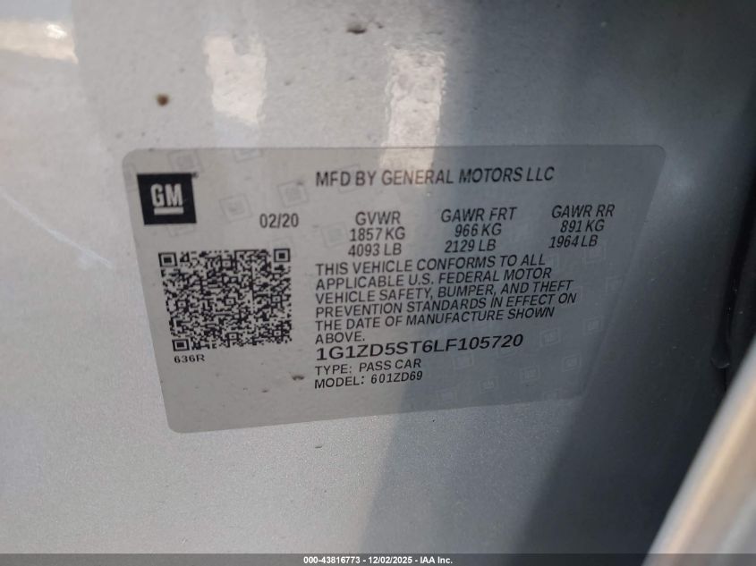 2020 CHEVROLET MALIBU 2020 року Бензин, 1.5, Передній привід, vin - 1G1ZD5ST6LF105720 з США