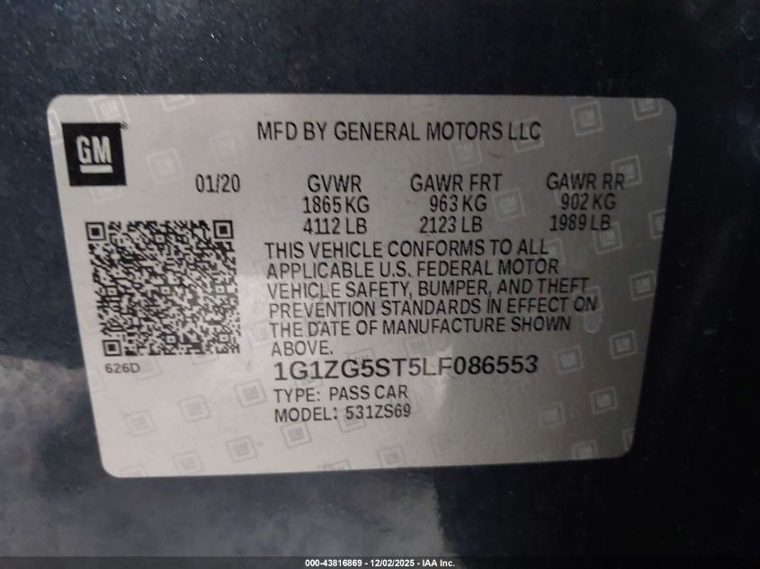 2020 CHEVROLET MALIBU 2020 року Бензин, 1.5, Передній привід, vin - 1G1ZG5ST5LF086553 з США