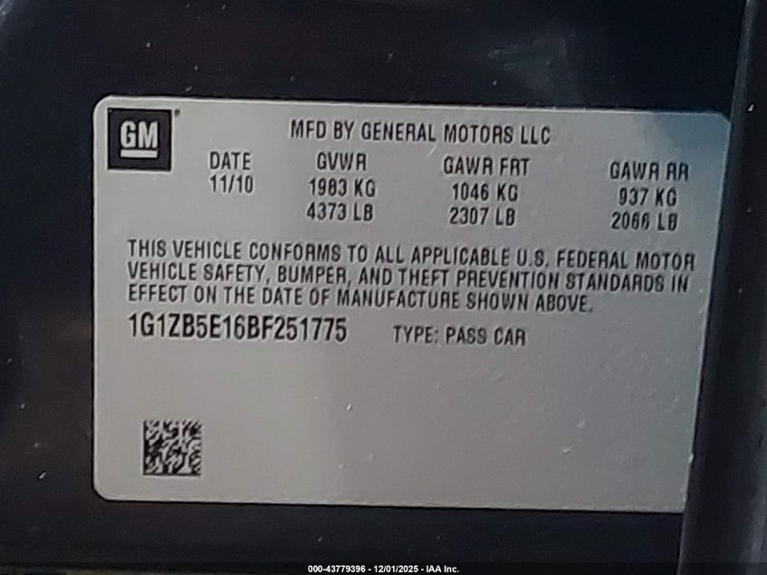 Колір СинійЦиліндри 4Привід Передній привідVIN 1G1ZB5E16BF251775Стан Заводиться та їде (перевірено)Ушкодження Передня або задня