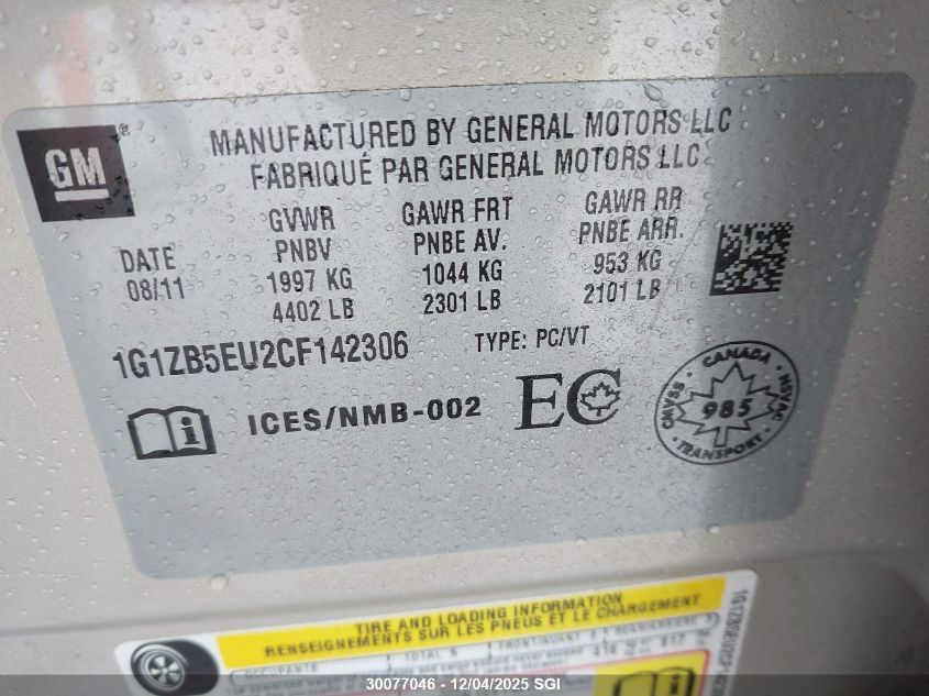 Колір БежевийЦиліндри 4Привід Передній привідVIN 1G1ZB5EU2CF142306Стан Заводиться та їде (перевірено)Ушкодження ПожежаДата аукціону 2025-12-09 AutoRIA