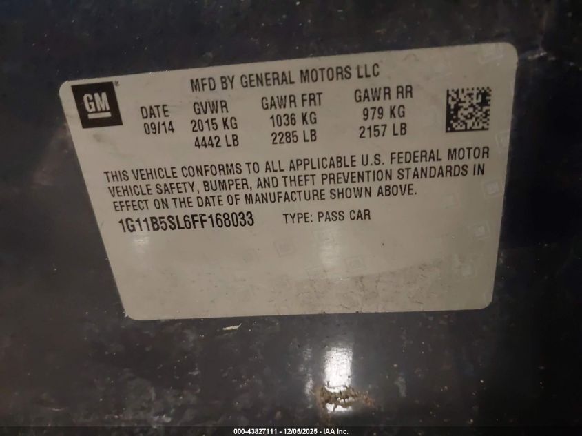 2015 CHEVROLET MALIBU 2015 року Бензин, 2.5, Передній привід, vin - 1G11B5SL6FF168033 з США