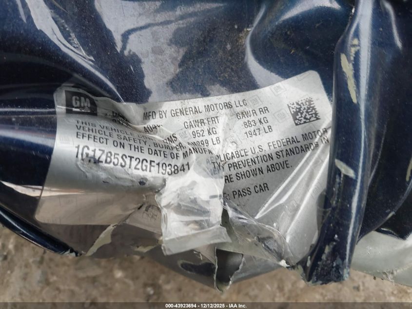 2016 CHEVROLET MALIBU 2016 року Бензин, 1.5, Передній привід, vin - 1G1ZB5ST2GF193841 з США