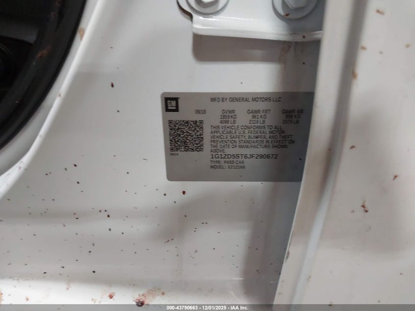 2018 CHEVROLET MALIBU 2018 року Бензин, 1.5, Передній привід, vin - 1G1ZD5ST6JF290672 з США
