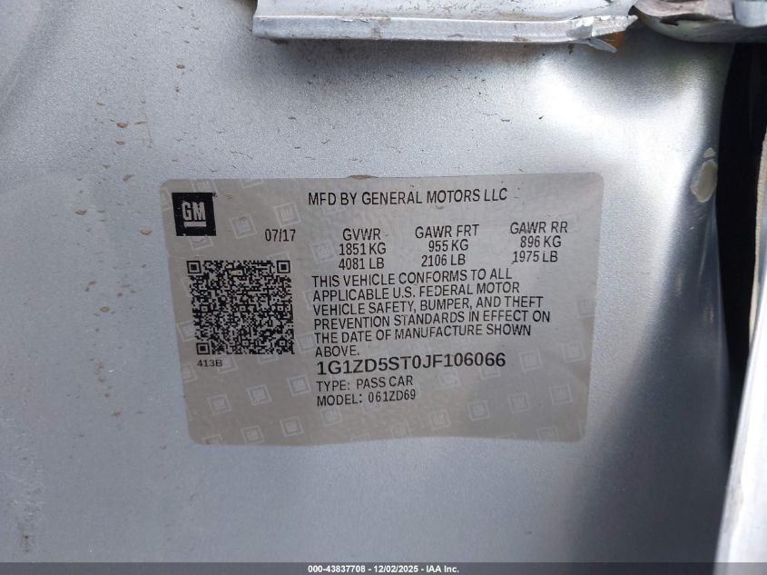 2018 CHEVROLET MALIBU 2018 року Бензин, 1.5, Передній привід, vin - 1G1ZD5ST0JF106066 з США