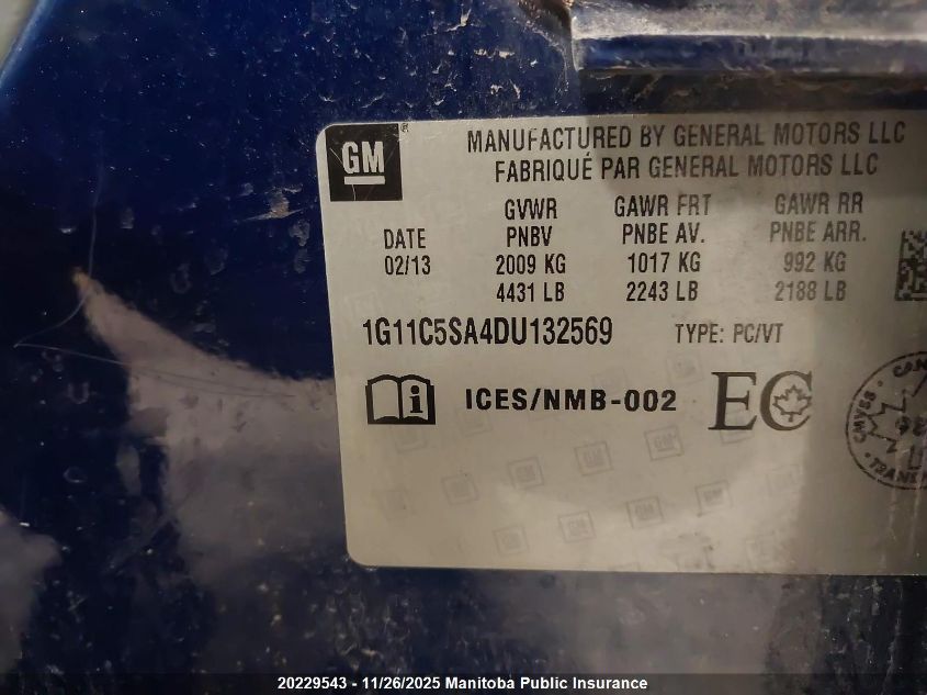 Колір СинійЦиліндри 4Привід Передній привідVIN 1G11C5SA4DU132569Стан СтаціонарноУшкодження ПередняДата аукціону 2025-12-10 AutoRIA