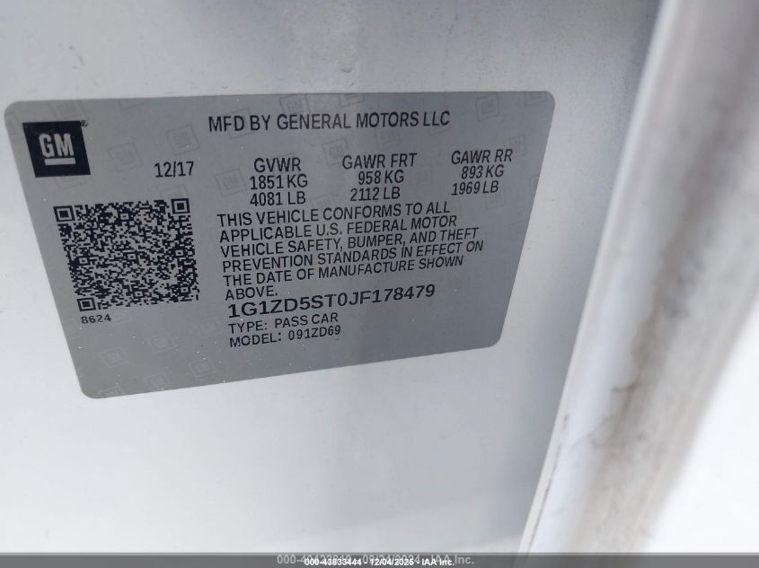 2018 CHEVROLET MALIBU 2018 року Бензин, 1.5, Передній привід, vin - 1G1ZD5ST0JF178479 з США