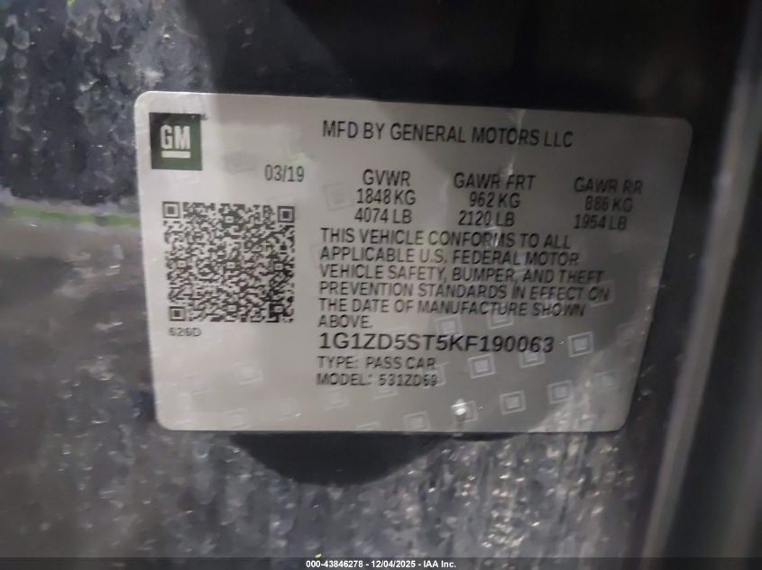 2019 CHEVROLET MALIBU 2019 року Бензин, 1.5, Передній привід, vin - 1G1ZD5ST5KF190063 з США
