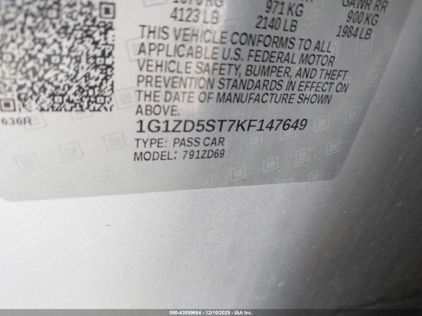 2019 CHEVROLET MALIBU 2019 року Бензин, 1.5, Передній привід, vin - 1G1ZD5ST7KF147649 з США
