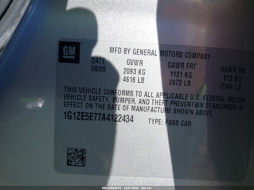 Колір СрібнийЦиліндри 6Привід Передній привідVIN 1G1ZE5E77A4122434Стан Заводиться та їде (перевірено)Ушкодження Задня ліва