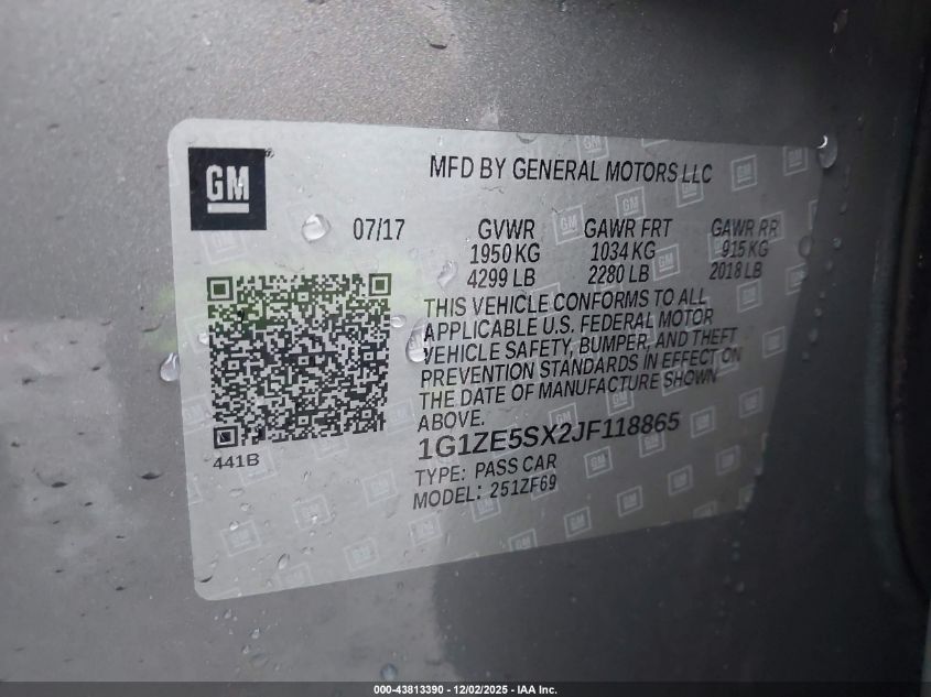 2018 CHEVROLET MALIBU 2018 року Бензин, 2.0, Передній привід, vin - 1G1ZE5SX2JF118865 з США