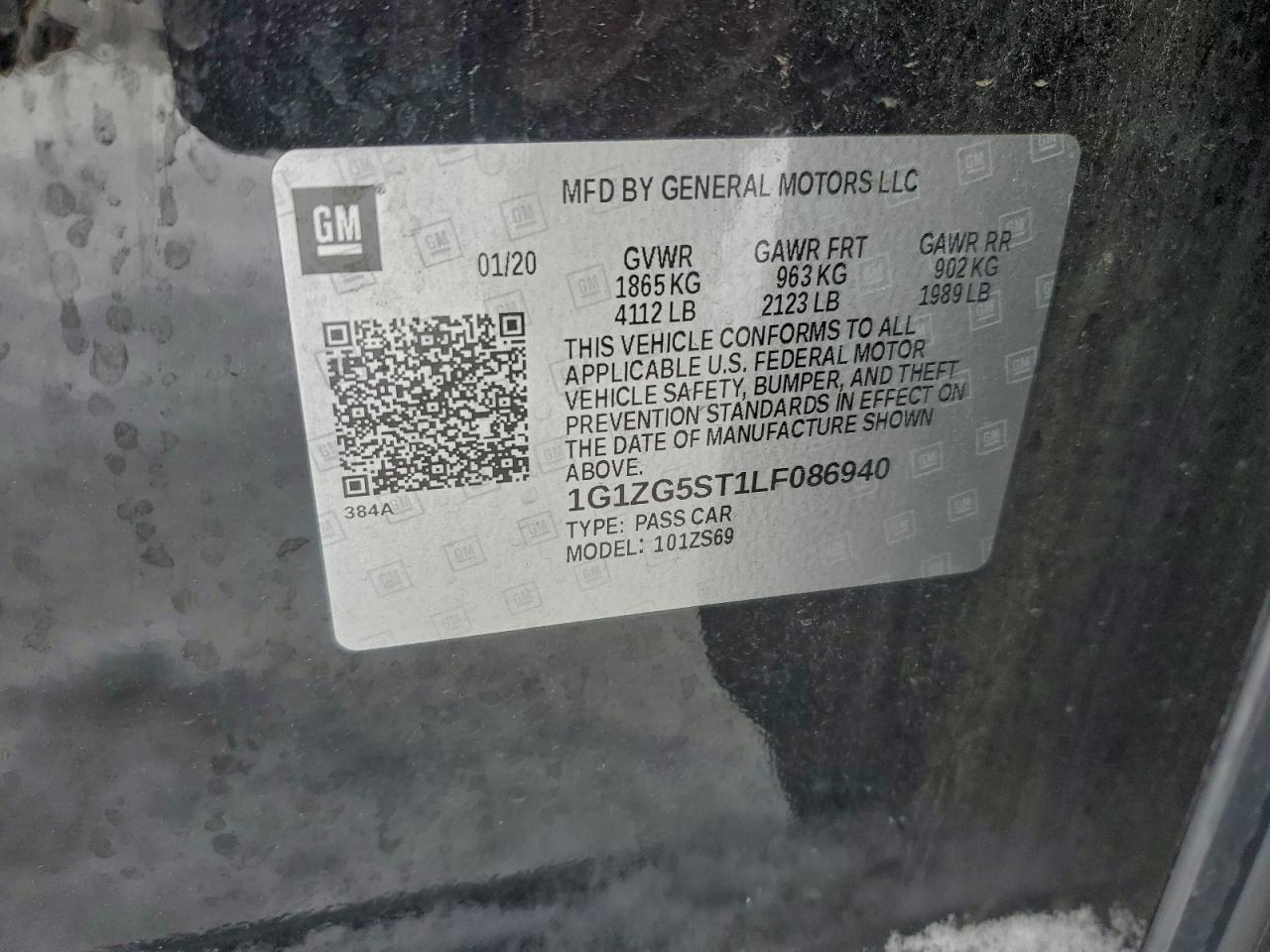 2020 CHEVROLET MALIBU 2020 року Бензин, 1.5, , vin - 1G1ZG5ST1LF086940 з США