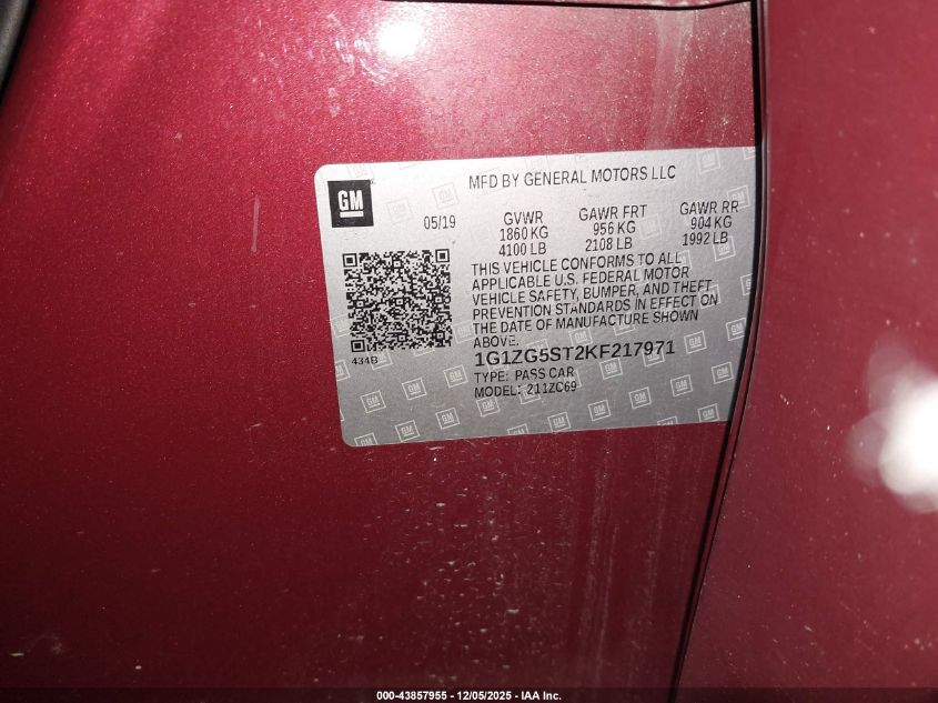 2019 CHEVROLET MALIBU 2019 року Бензин, 1.5, Передній привід, vin - 1G1ZG5ST2KF217971 з США