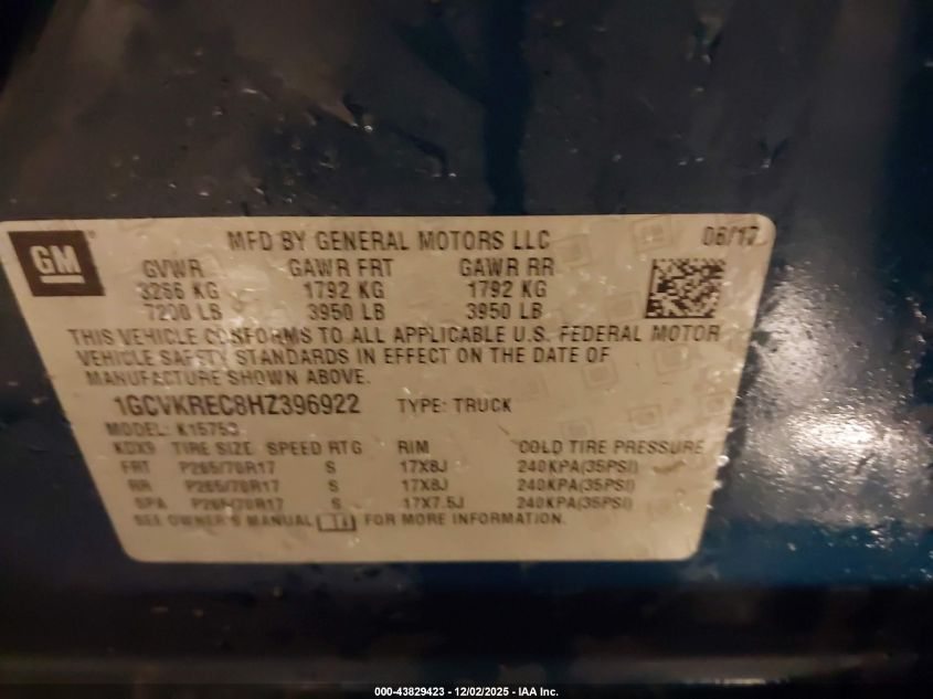 2017 CHEVROLET SILVERADO 1500 2017 року Бензин, 5.3, Повний привід, vin - 1GCVKREC8HZ396922 з США