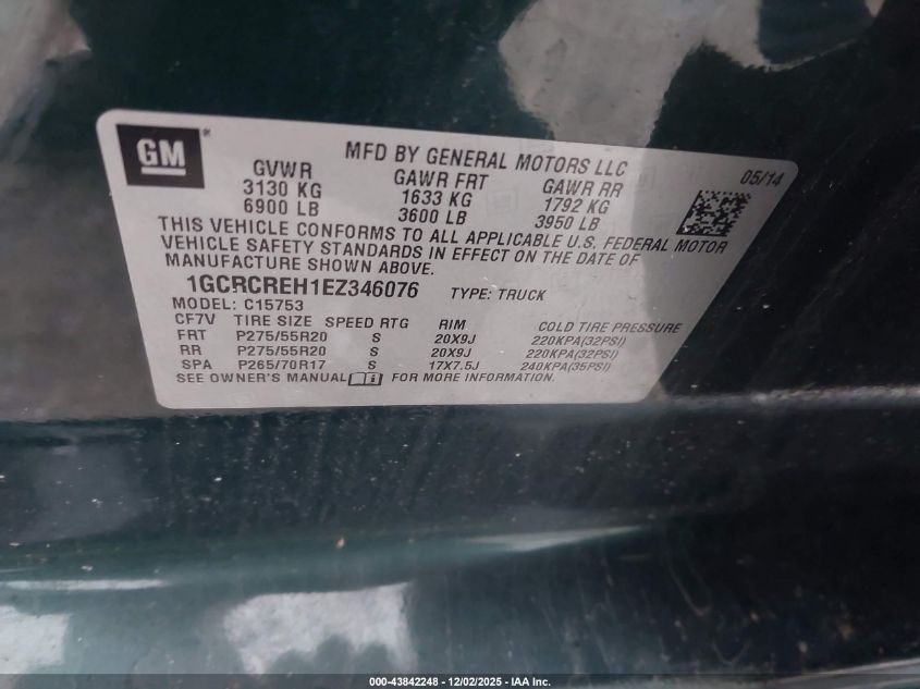 2014 CHEVROLET SILVERADO 1500 2014 року Бензин, 4.3, , vin - 1GCRCREH1EZ346076 з США