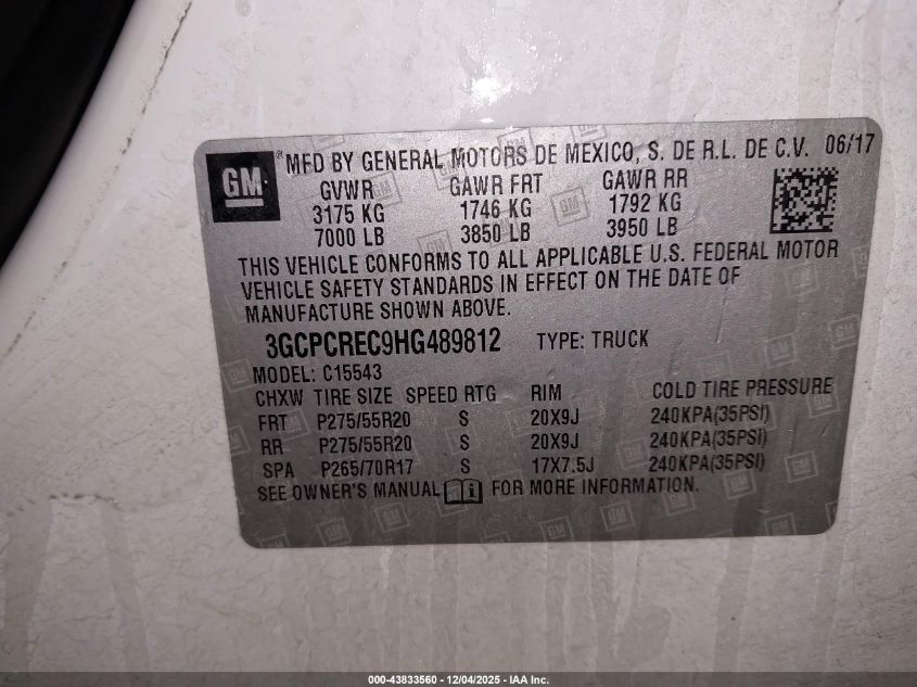 Колір БілийЦиліндри 8VIN 3GCPCREC9HG489812Стан Заводиться та їде (перевірено)Ушкодження Передня або задня