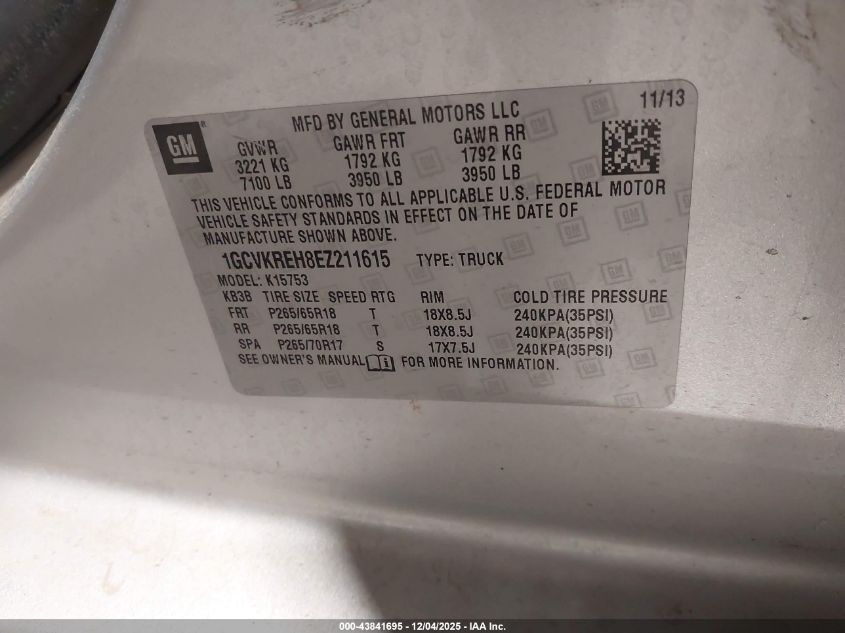 2014 CHEVROLET SILVERADO 1500 2014 року Бензин, 4.3, Повний привід, vin - 1GCVKREH8EZ211615 з США