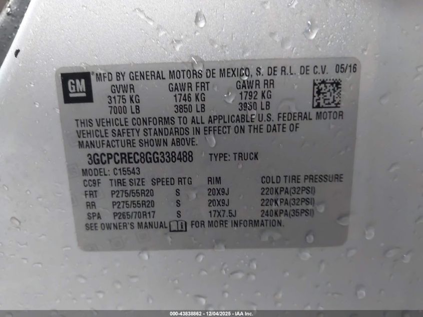 Колір СрібнийЦиліндри 8VIN 3GCPCREC8GG338488Стан Заводиться та їде (перевірено)Ушкодження Задня
