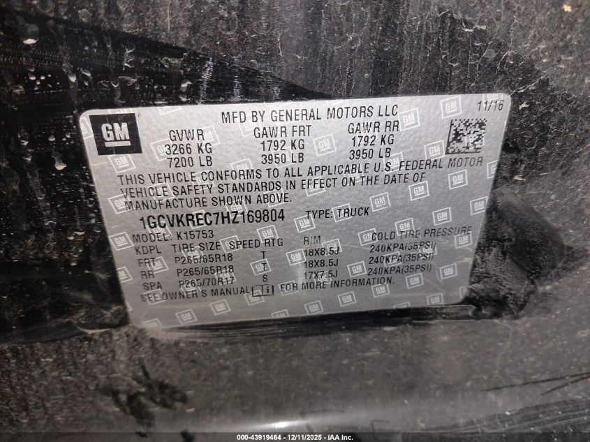 2017 CHEVROLET SILVERADO 1500 2017 року Бензин, 5.3, Повний привід, vin - 1GCVKREC7HZ169804 з США