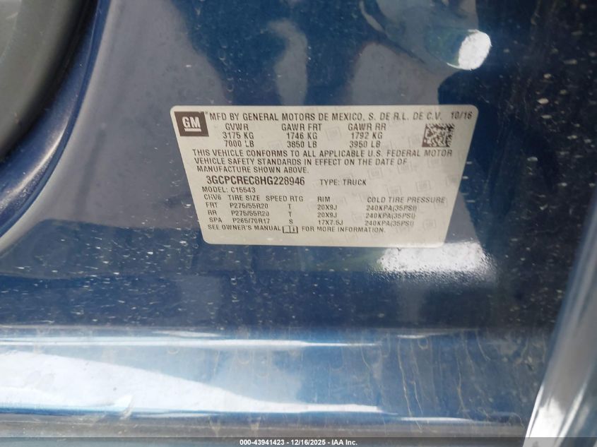 Колір СинійЦиліндри 8VIN 3GCPCREC8HG228946Стан НевідомоУшкодження Невідомо